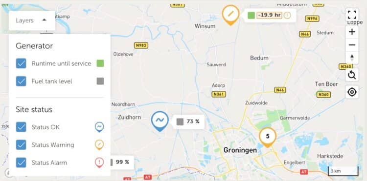We’ve improved the warnings and alarms in the installation overview. You no longer need to click into a site to identify issues. Simply hover your mouse over an alert to view a pop-up message with more details. Clicking on the alarm will take you to the alarm log for further information.