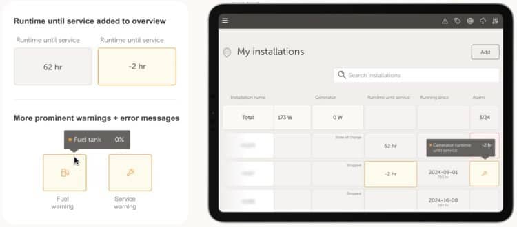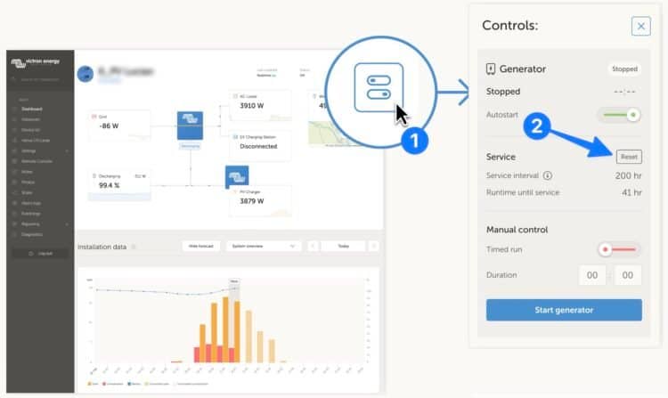 While this was previously possible, it required going in via the remote console. This improvement brings the service interval reset button to the control centre in VRM alongside the other generator controls, making it faster to access and easier to use.