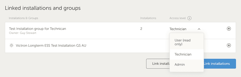 Key differences between Technicians and Site Admins include three restrictions: Technicians cannot delete a site, replace the GX device linked to a site, or remove other users’ access to the site.