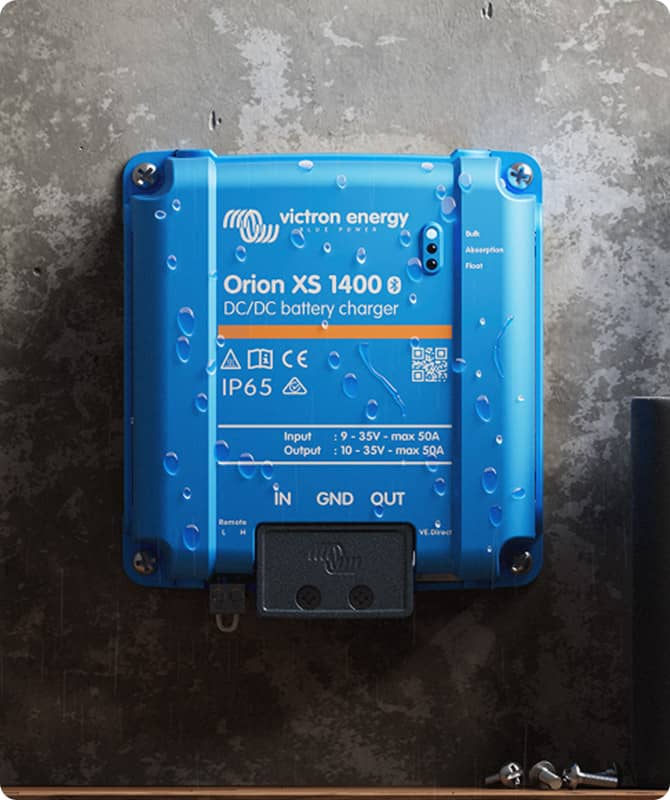 Robusto, compatto e senza ventola, l'Orion XS è fatto per la vita a bordo. Offre una ricarica CC-CC efficiente in vani motore ristretti, supporta più banchi di batterie e offre la conversione 12/24V con il modello XS 1400.